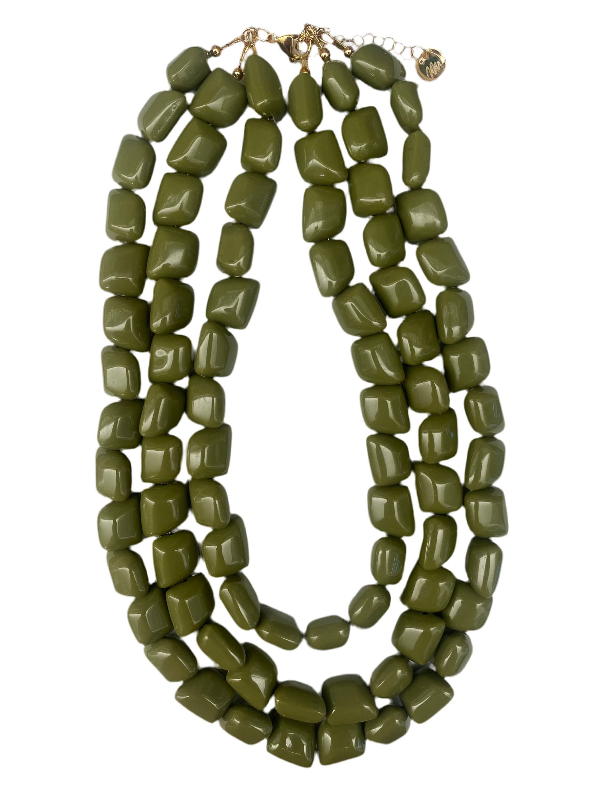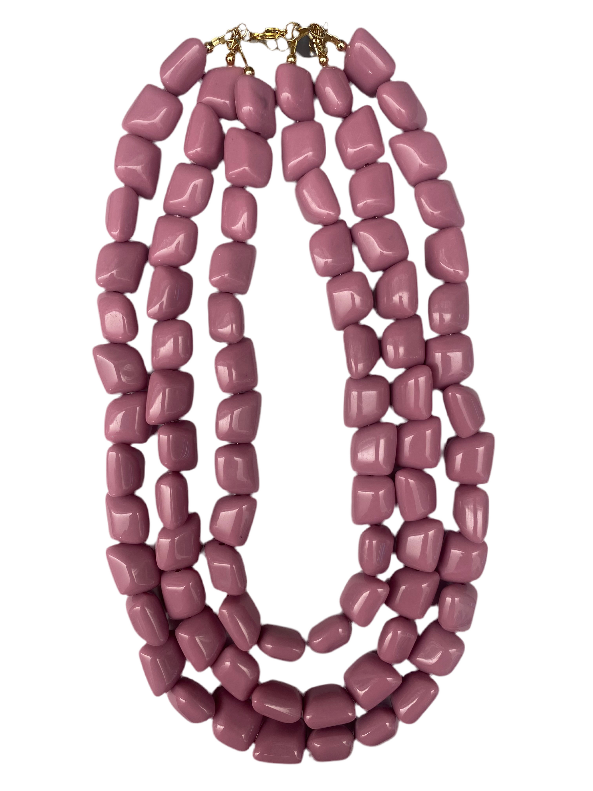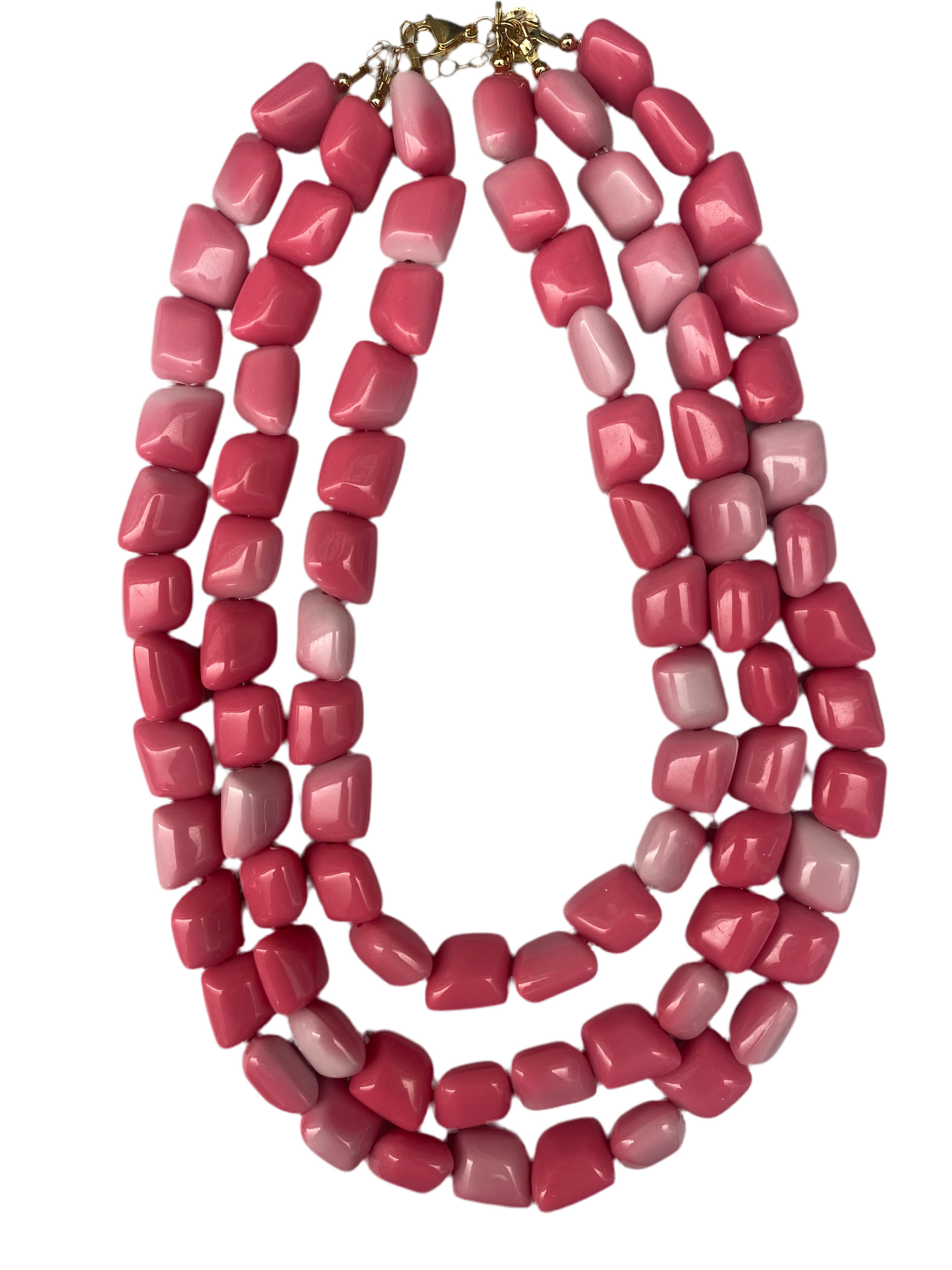 Acrylic Beads, shortest strand measures 17” long. Includes 2” chain extender.