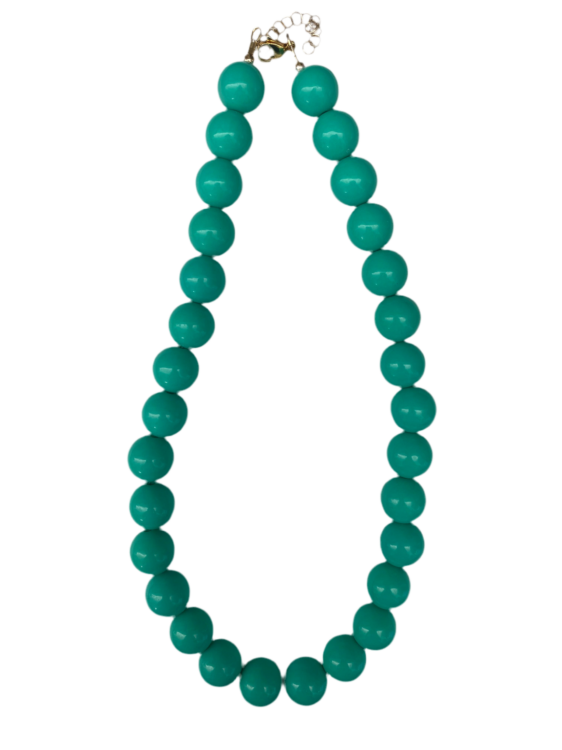 16mm Resin Beads, necklace measures 19” long with 2” chain extender.