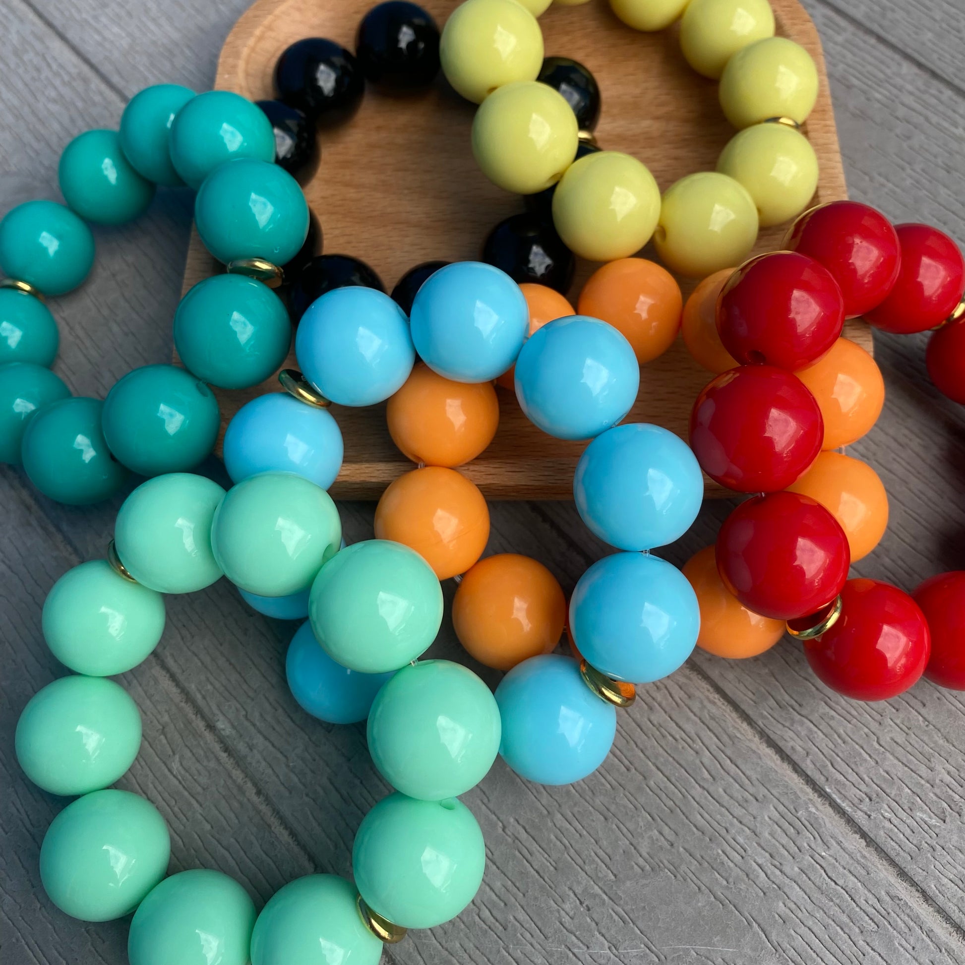 Resin Beads and Stainless Steel Spacer. Made with Stretch Cord, One Size Fits Most