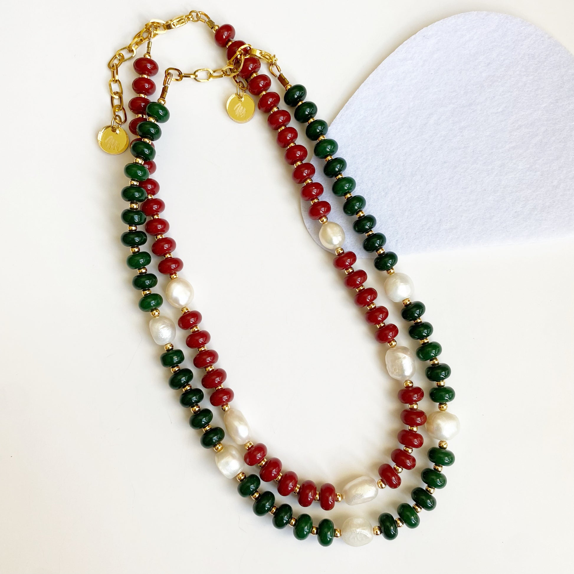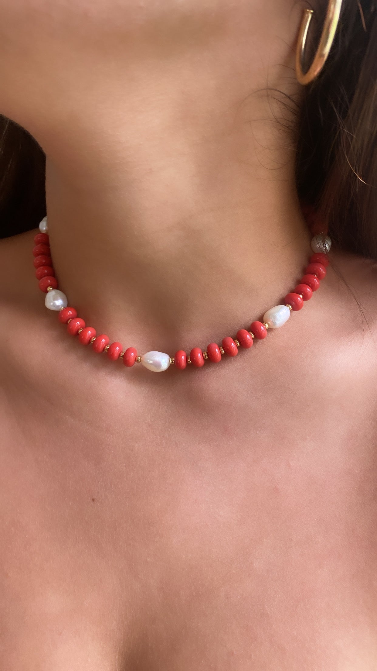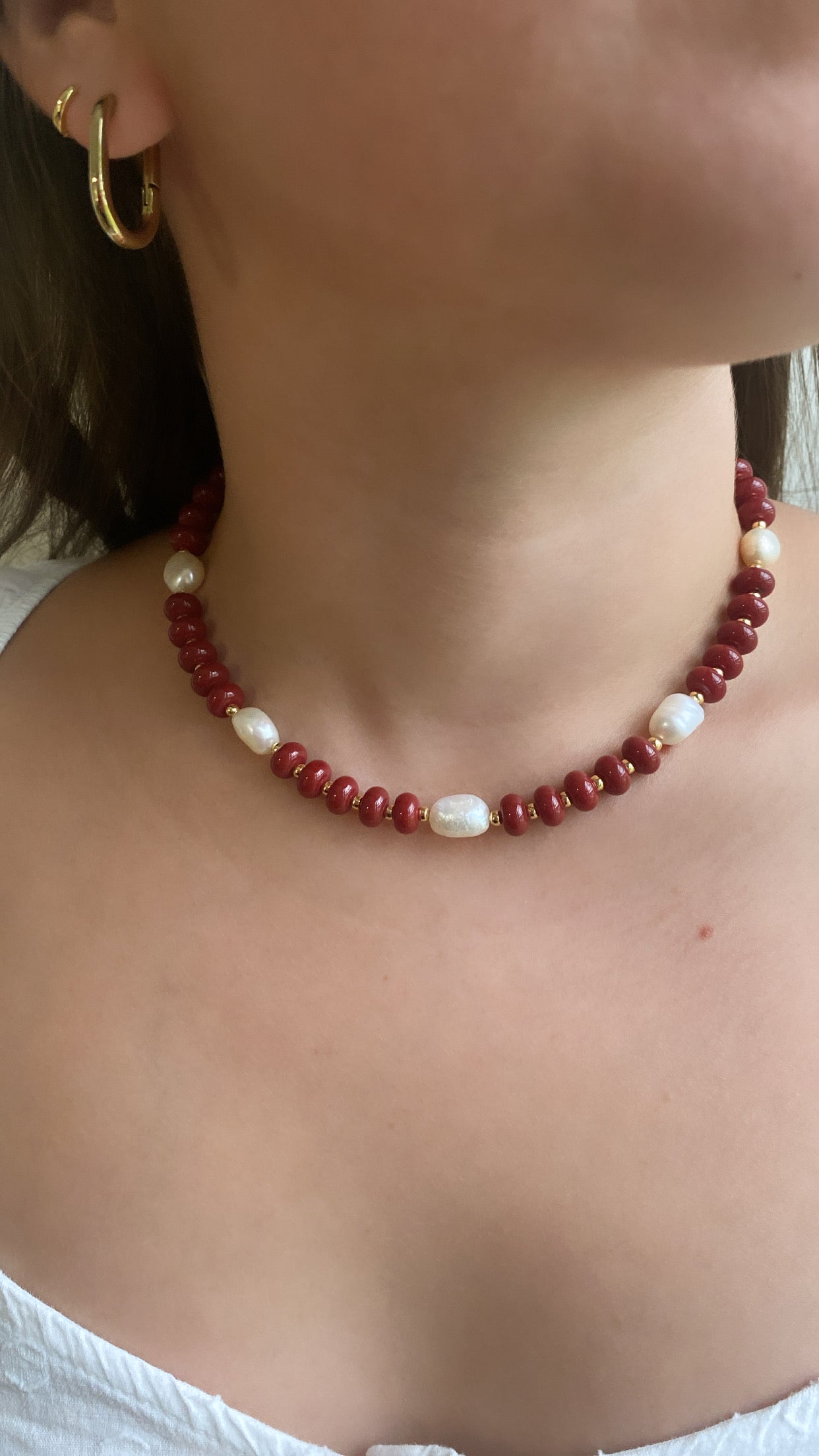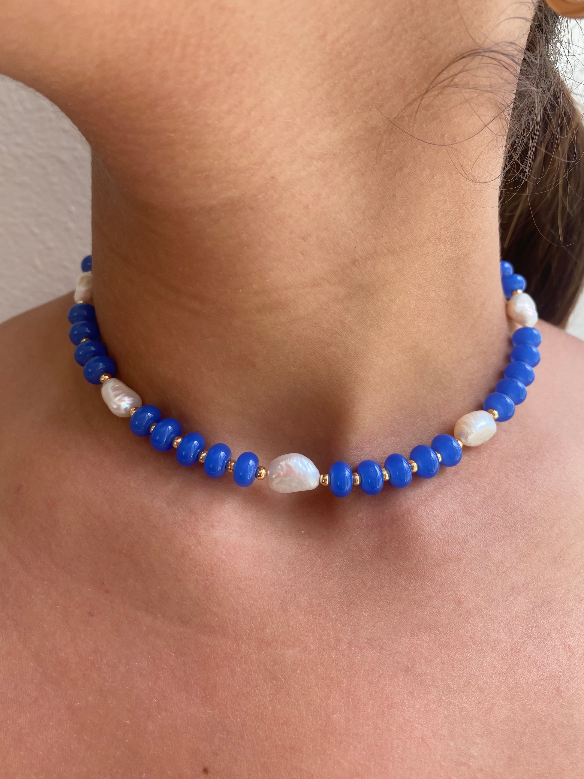 Glass beads, fresh water pearls and 18k gold plated spacers.
