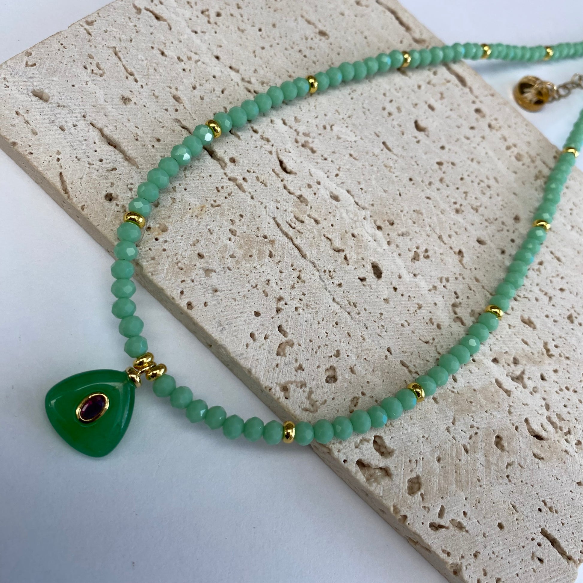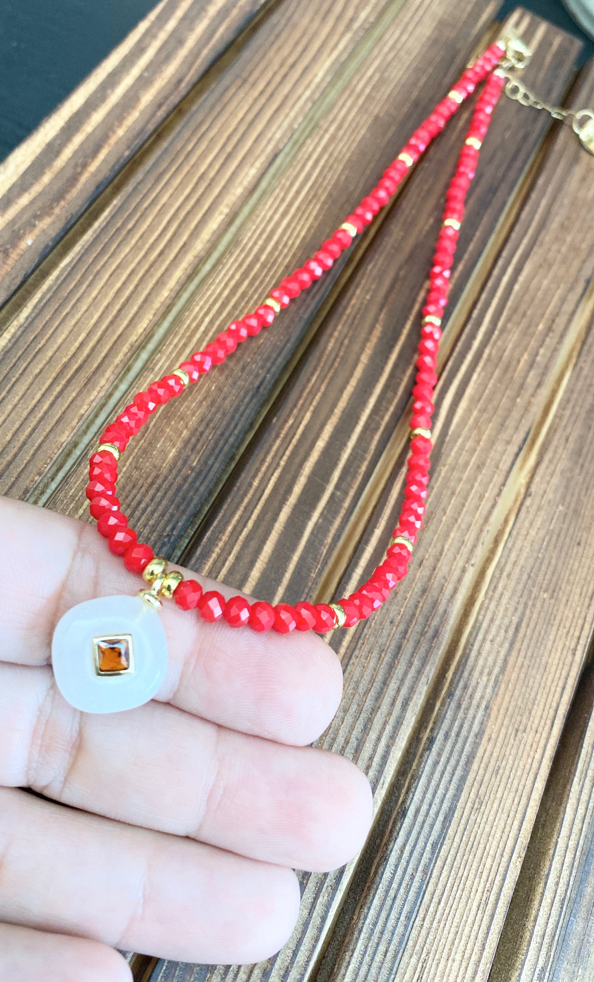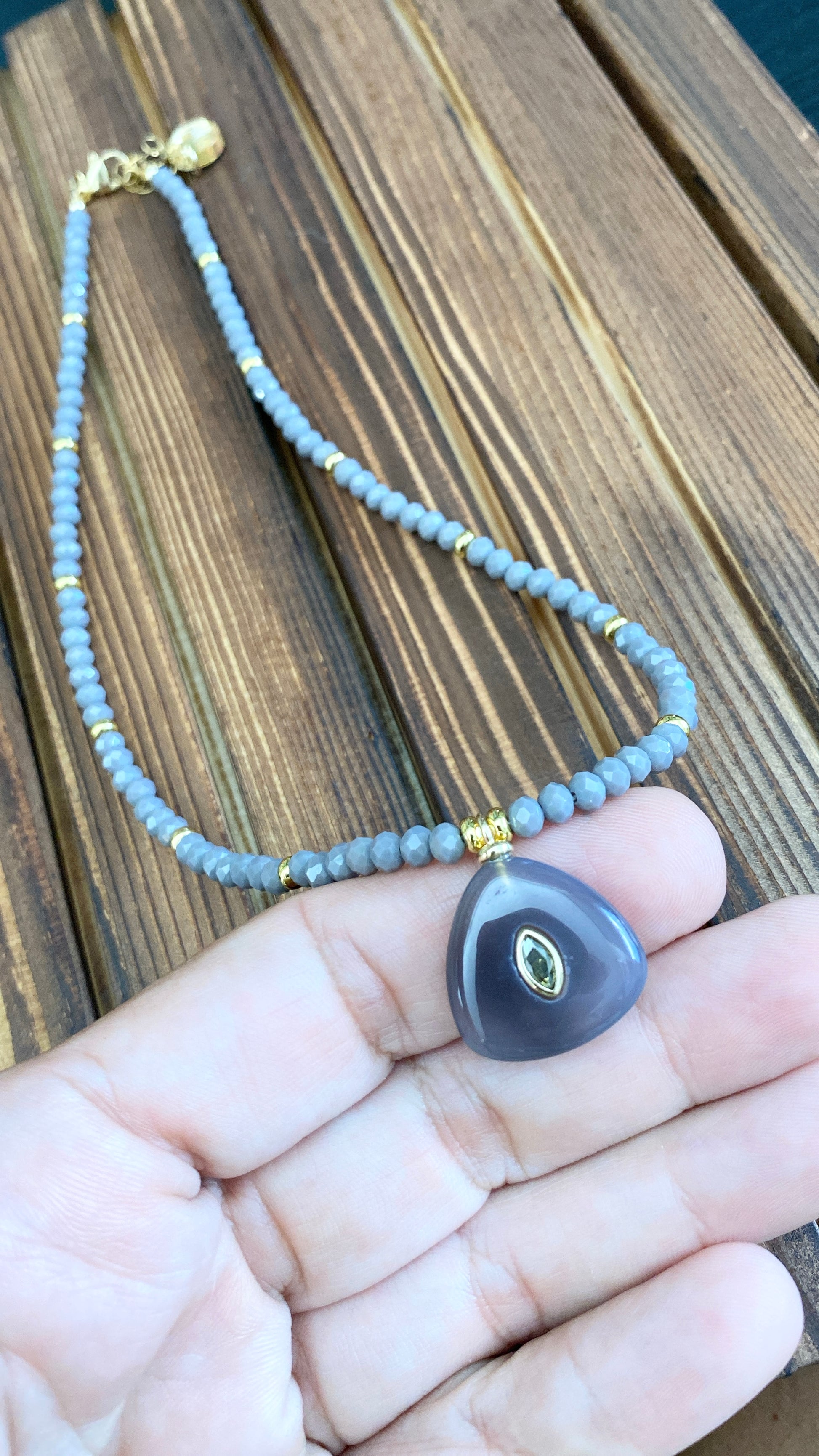 Faceted Crystal Beads and Gemstone Pendants, Measures 16” Long with 2” Chain Extender.