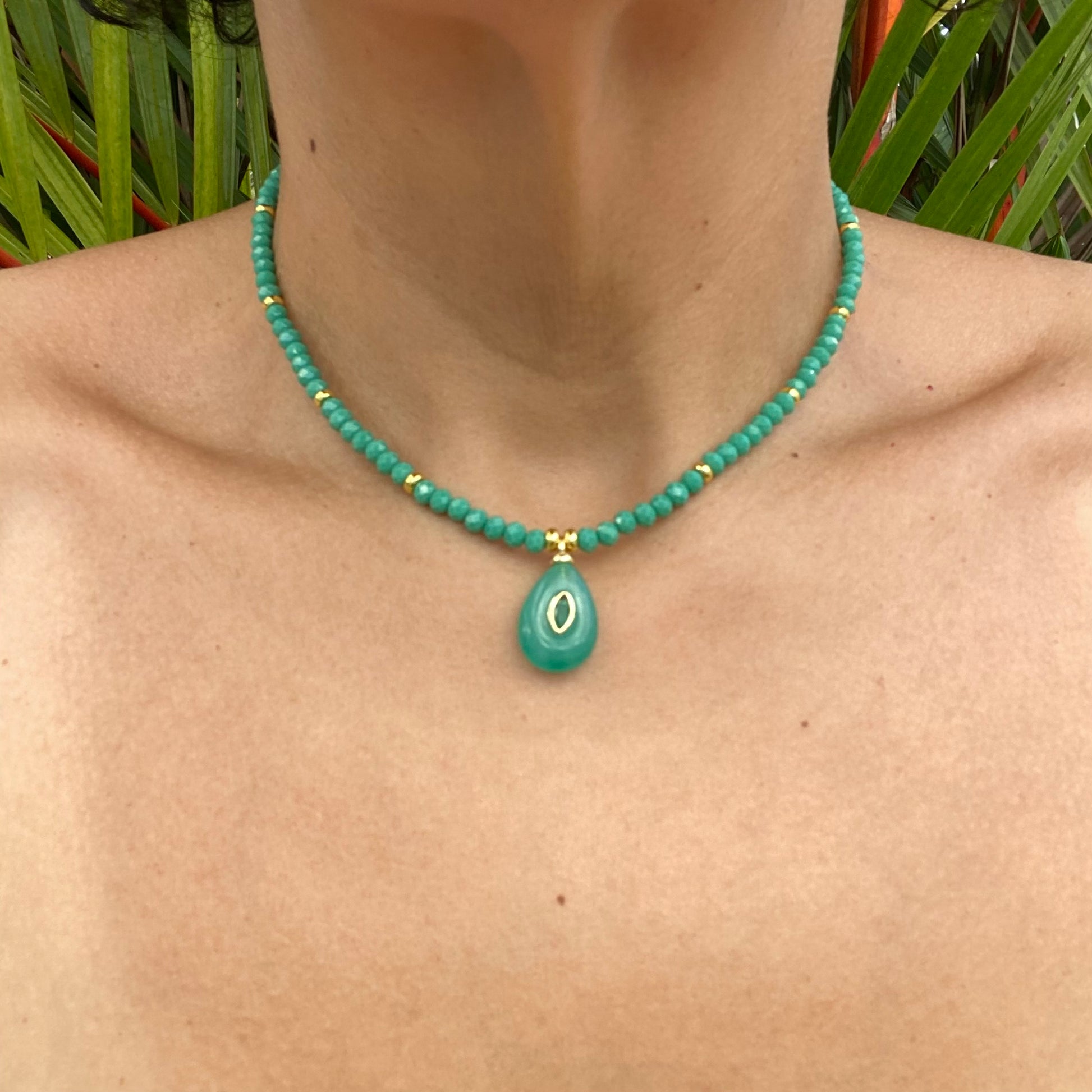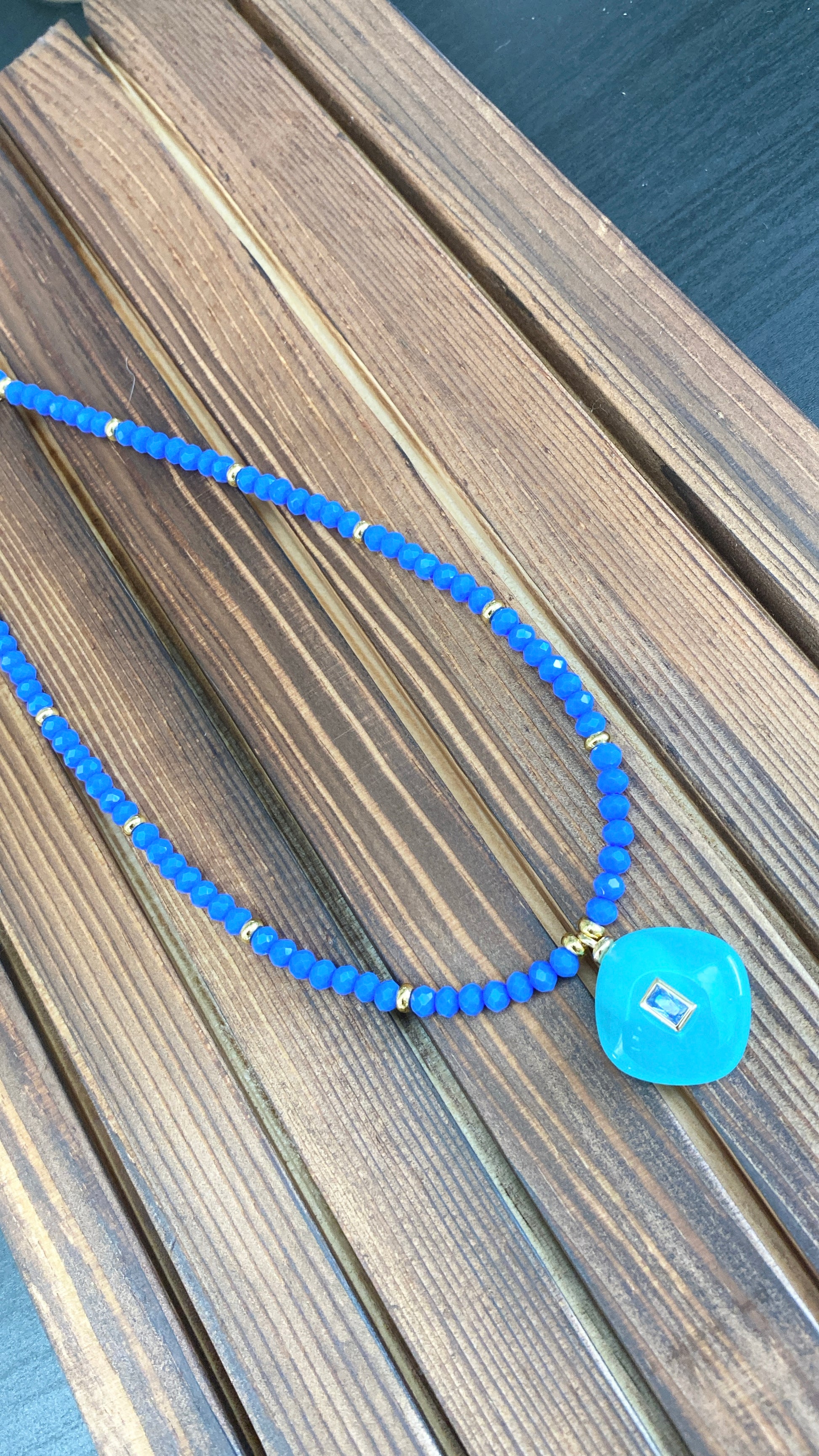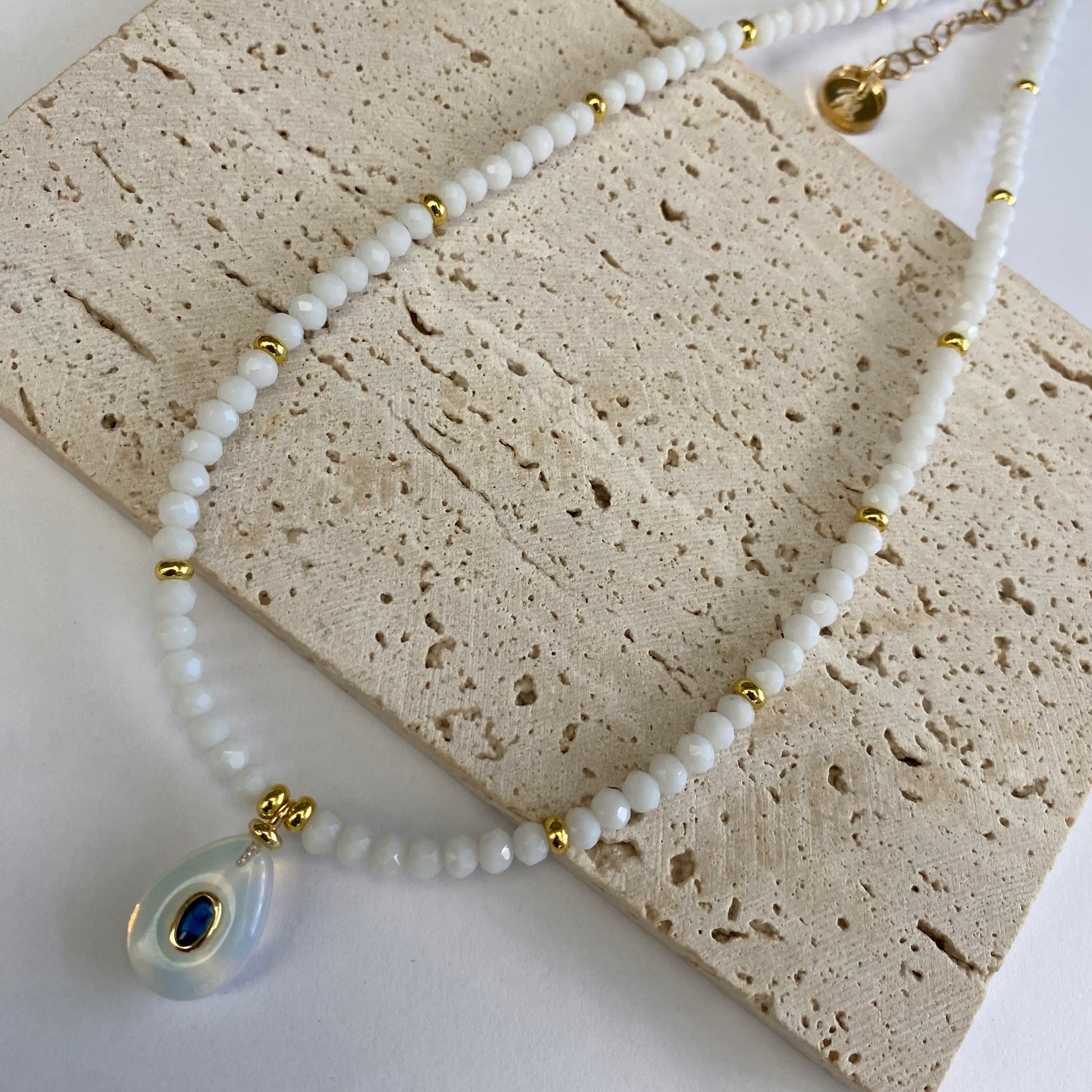 Faceted Crystal Beads and Gemstone Pendants, Measures 16” Long with 2” Chain Extender.