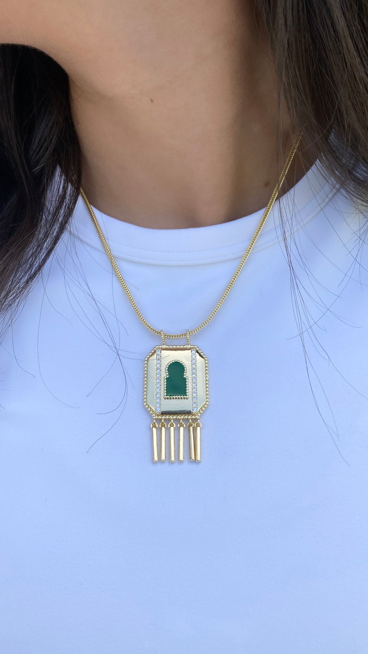 18K Gold Rack Plated Brass, Chain Measures 17” Long.