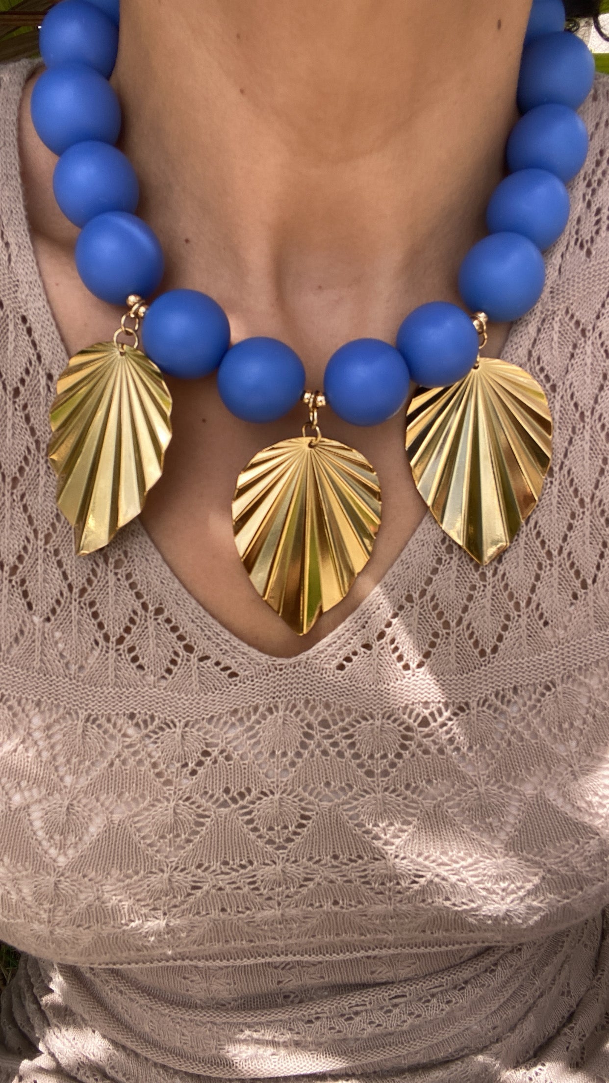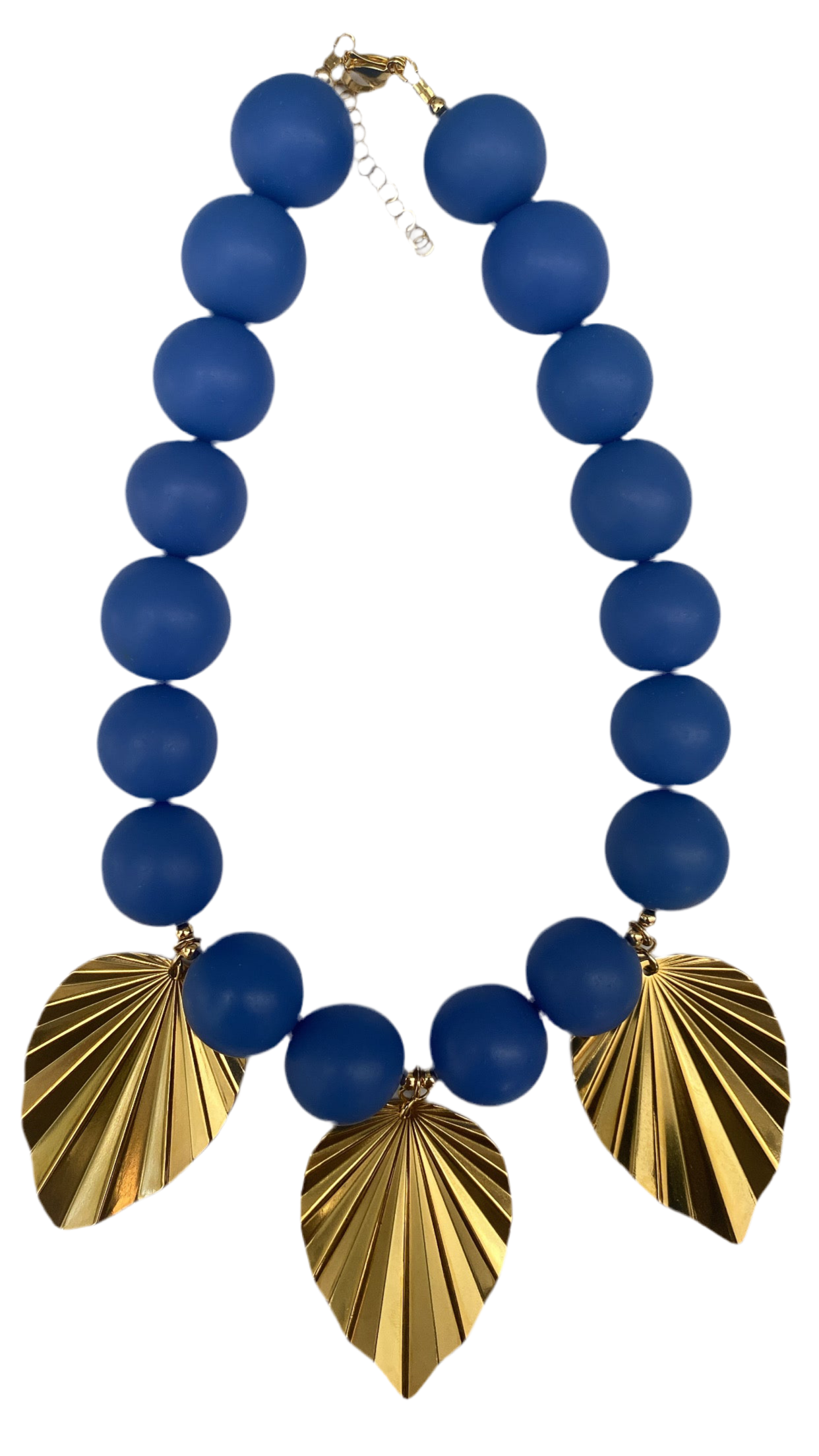 Resin Beads and Stainless Steel Leaves, Measures 20” Long with 2” Chain Extender.