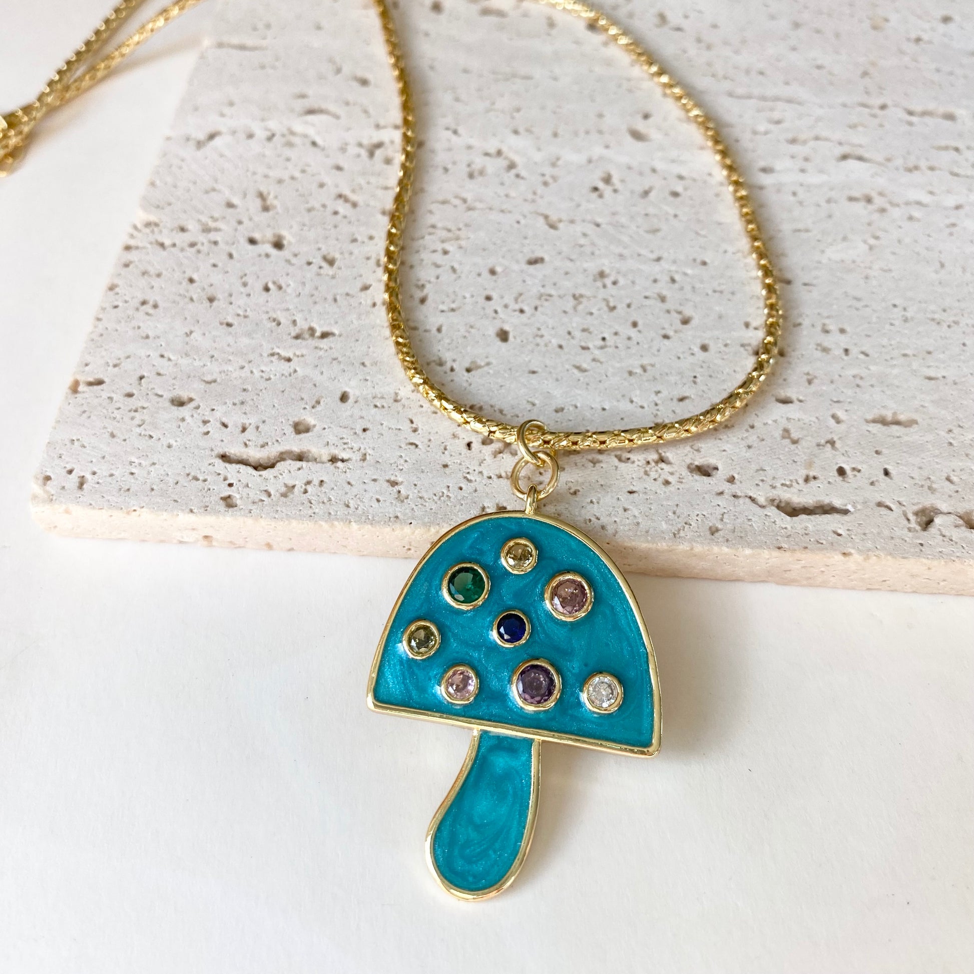 18k gold plated chain and pendant with cubic zirconia. Measures 17” long.