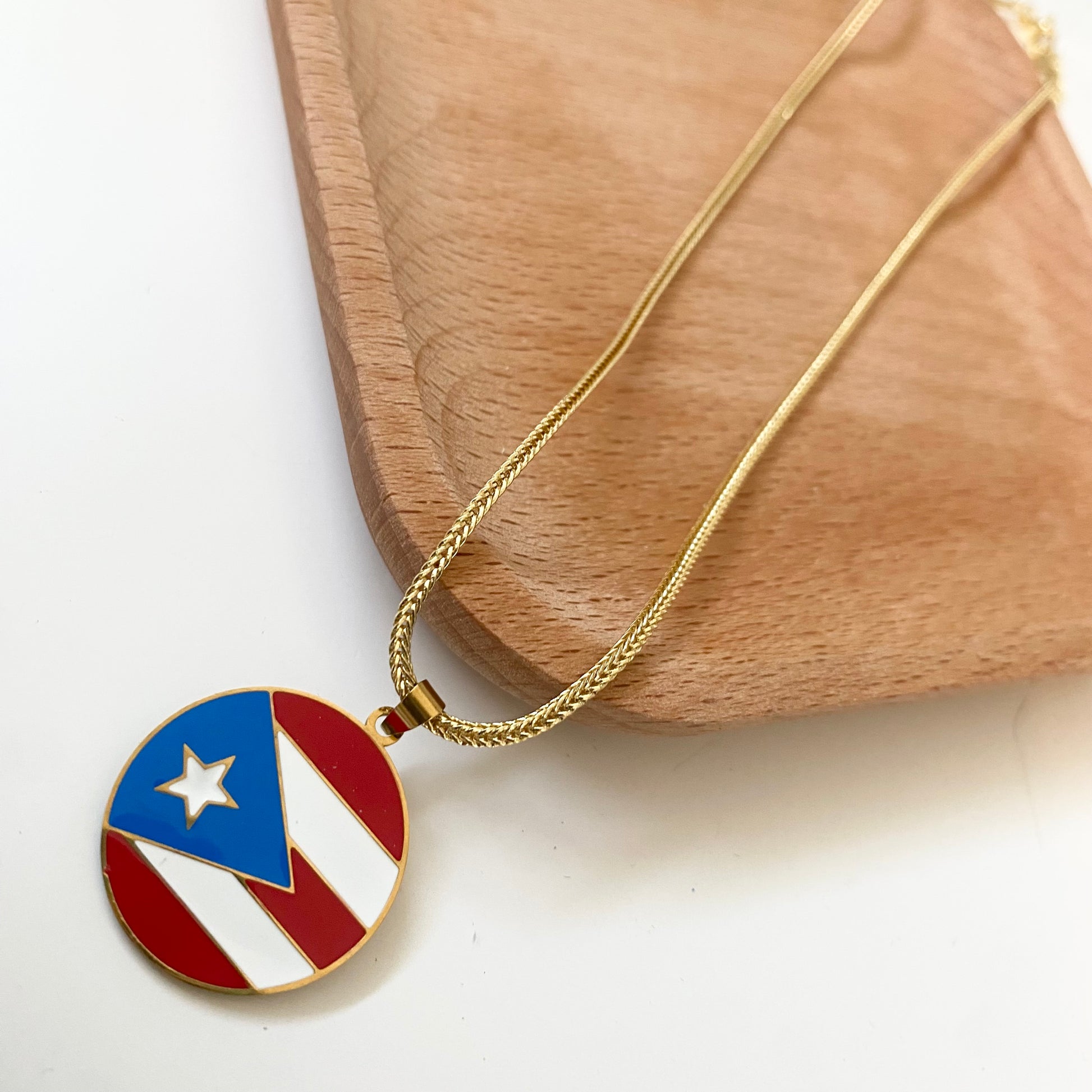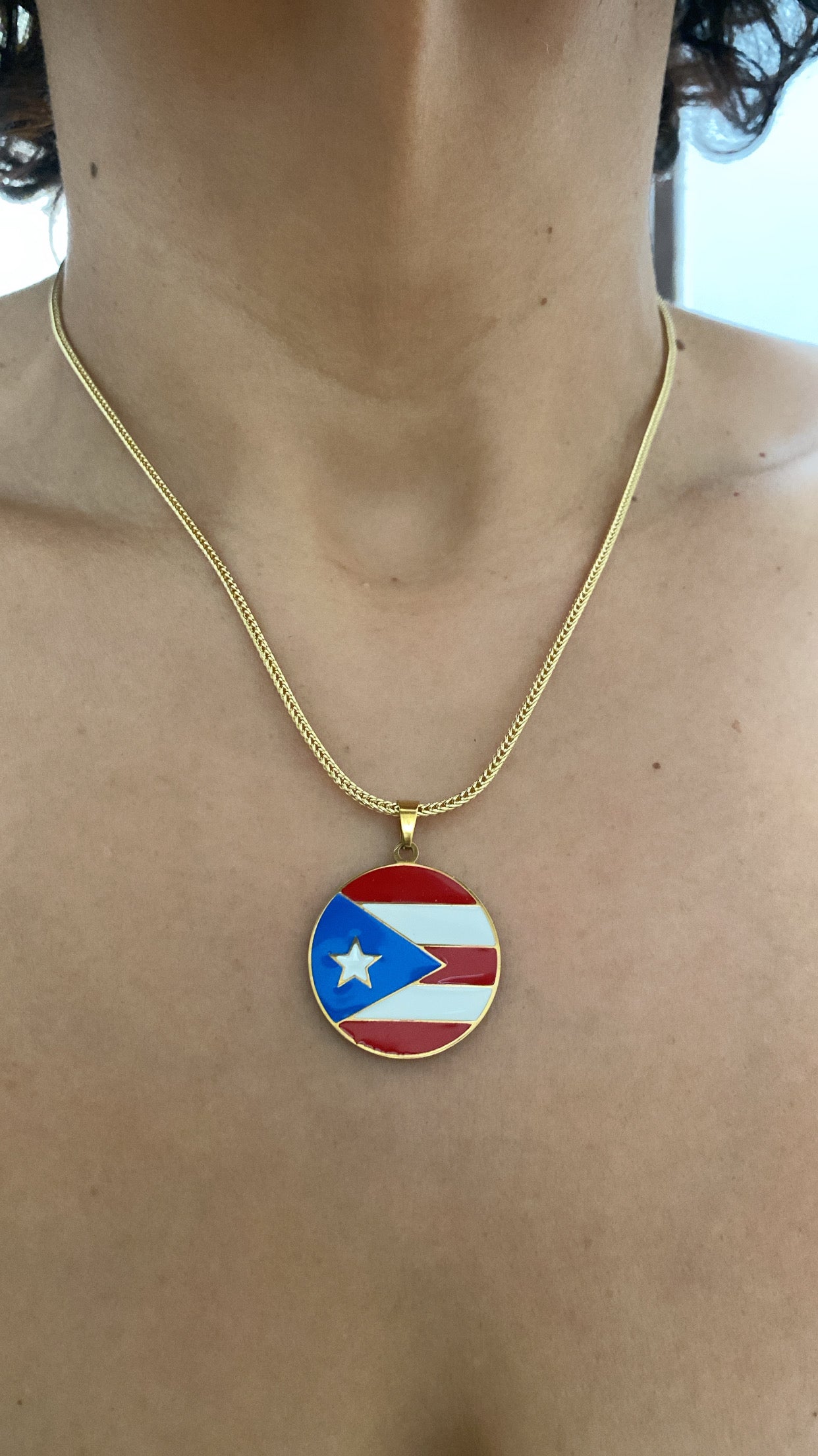 18k Gold Plated Chain and Stainless Steel Pendant, Measures 17” Long.