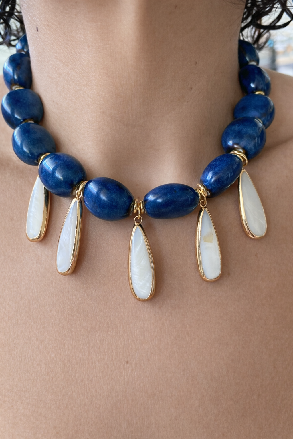 Ceramic Beads and Natural Shell Pearls, Measures 16.5” Long with 2” Chain Extender.
