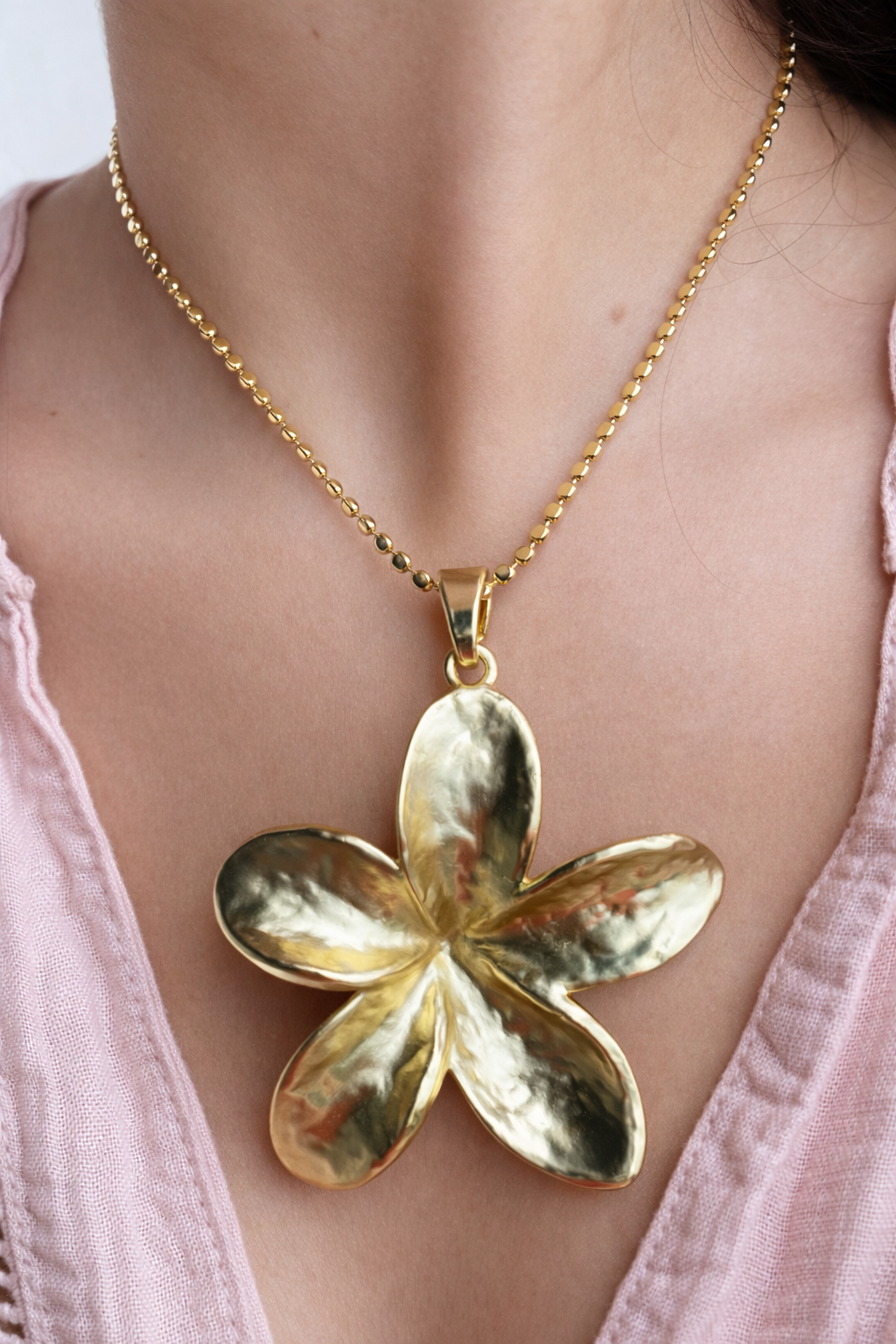 18k gold plated chain and pendant, measures 17” with 2” chain extender.