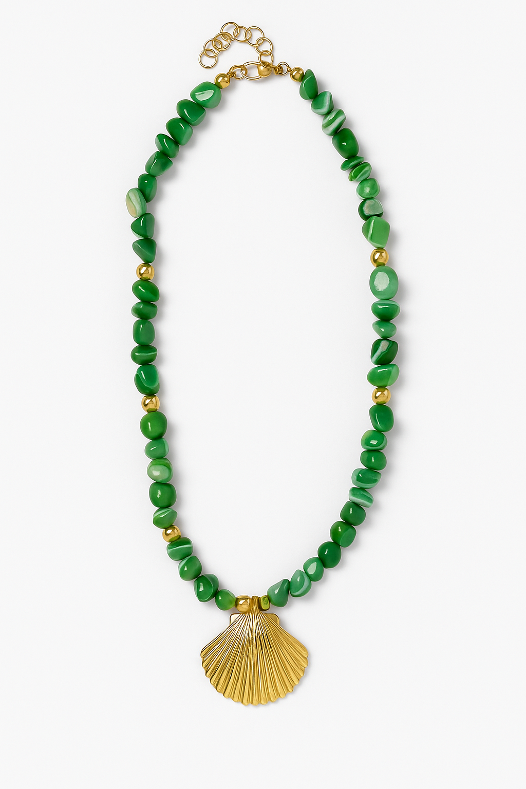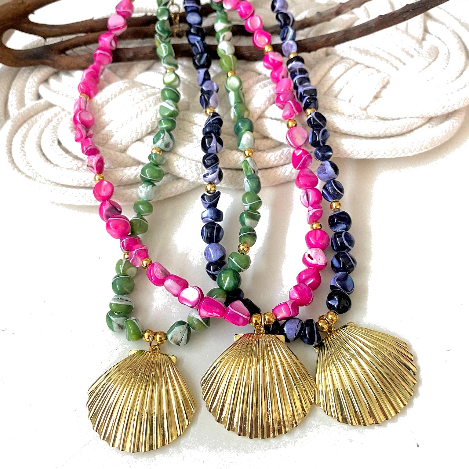 Mother of Pearl and Stainless Steel Pendant, Measures 15” Long With 2” Chain Extender.