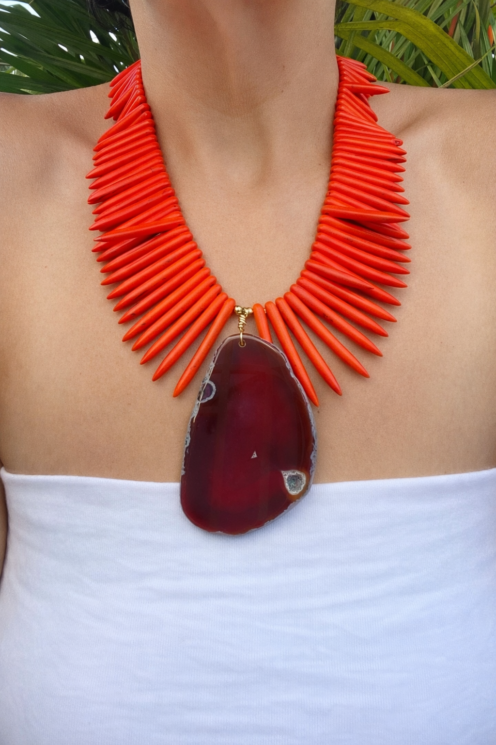 Natural Howlite Beads and Agate Pendant, Measures 18” Long with 2” Chain Extender