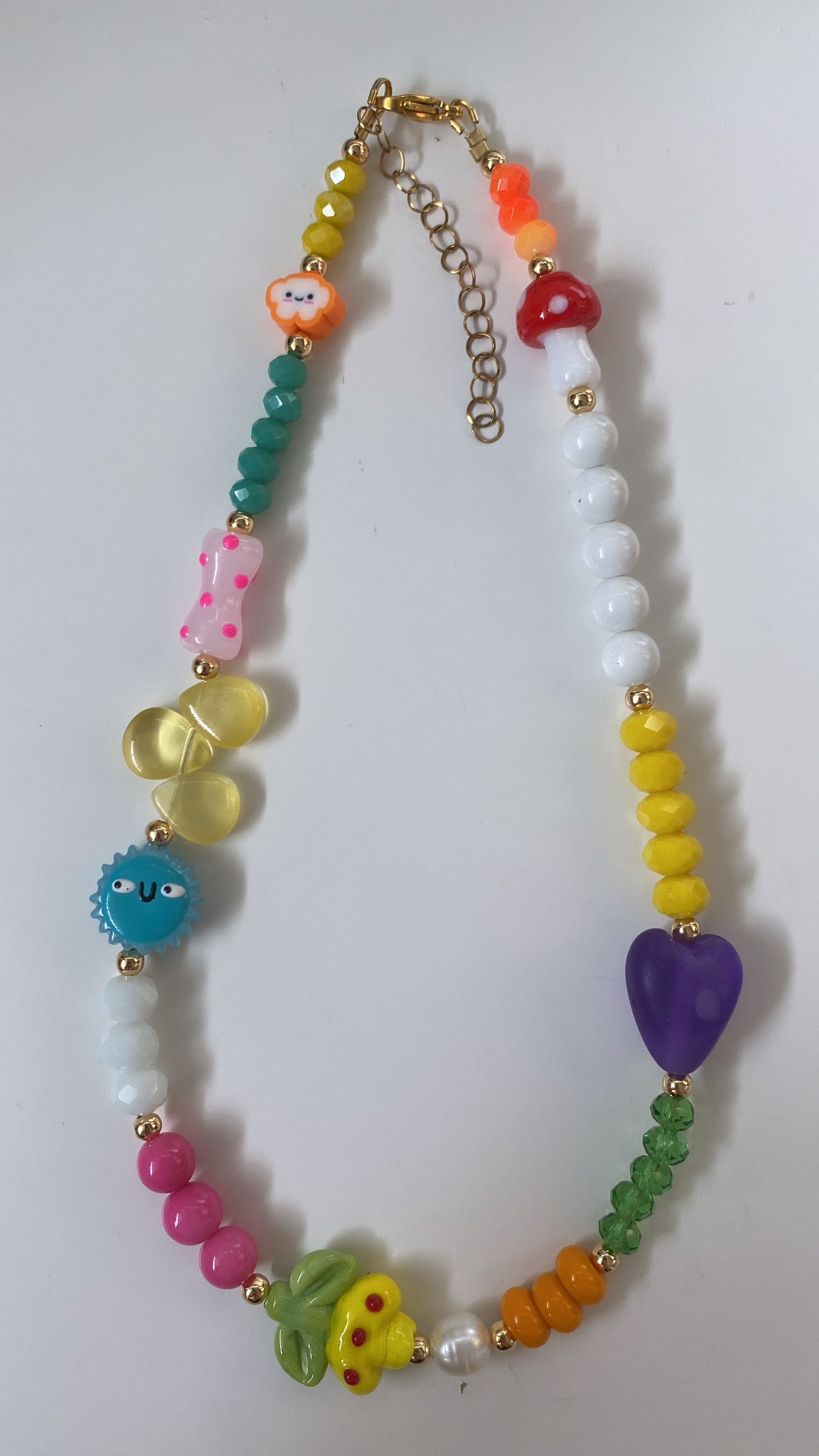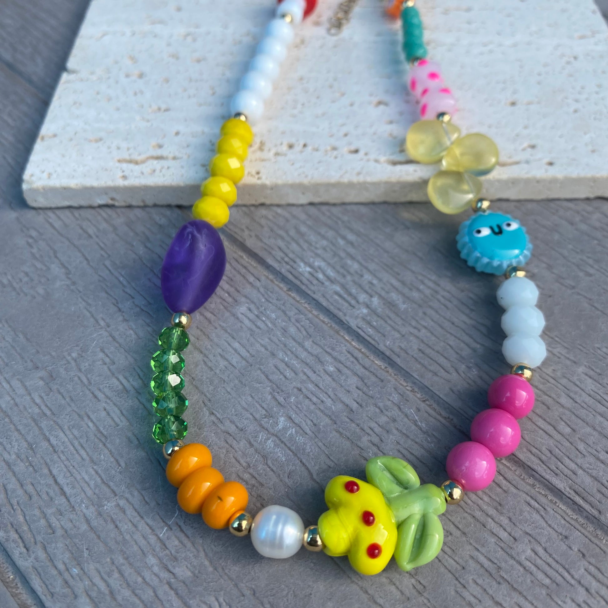 Mix of Resin and Lampwork Crystal Beads, Measures 15” Long with 2” Chain Extender.