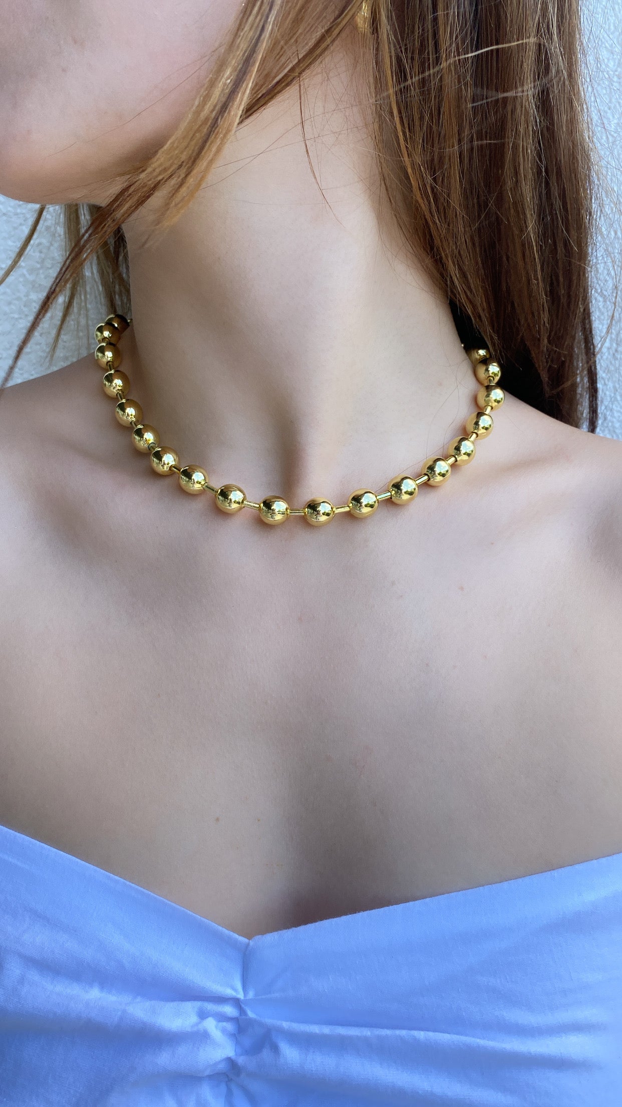 Rack Plating 18k Gold Plated Brass, 10mm beads, Measures 17” Long with 1” Chain Extender.